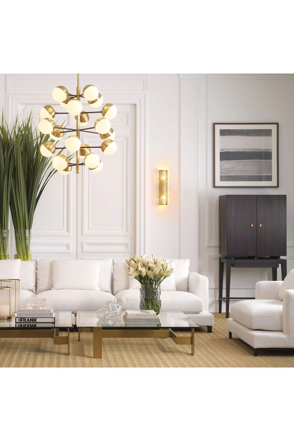 Ribbed door panels lend geometry to the distinctive Dimitros Wine Cabinet, inspired by the aesthetic of the mid-20th century. Outfitted with 2 shelves, an extension shelf and storage spaces for bottles and stemware, this stylish tall bar cabinet is a spirit connoisseur's best friend.