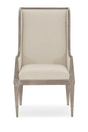 A handsome addition at any table, the Open Arms Arm Chair elevates every dining experience. Its timeless silhouette is brought to life in a casually elegant Ash Driftwood finish and complemented with a finely tailored, luxe fabric cover in an elegant neutral shade. Easygoing at heart, the fine lines of this fully upholstered chair render it perfect for the host and hostess. Metal ferrules in Sundance Gold cap each front leg for a touch of bling.