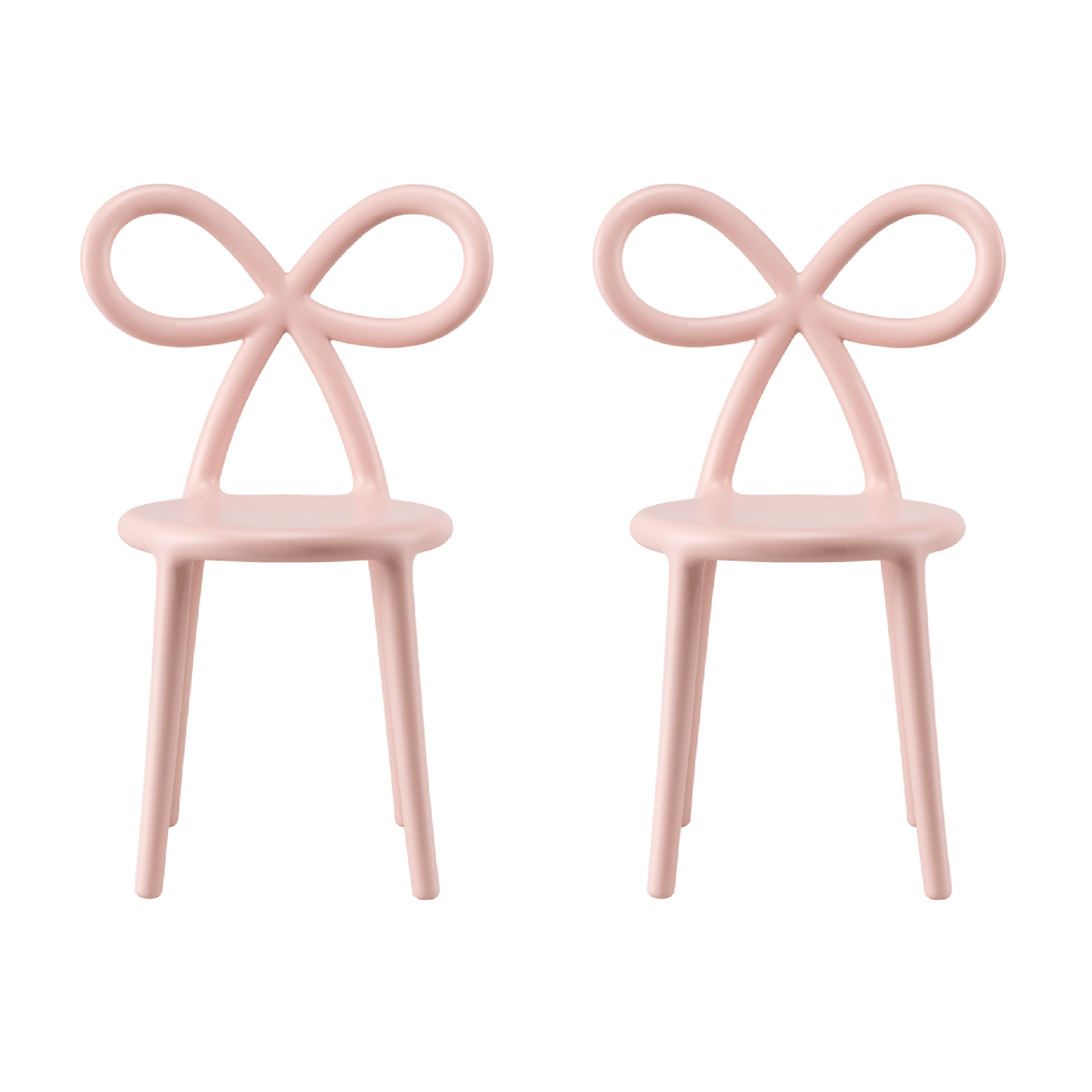 The feminine chair par excellence is now proposed in the mini version, suitable for children. The delicate and essential shapes remind the Ribbon Chair in its original size: that’s how a small-scale chair with a strong identity was born. As in the adult version, the large bow that acts as a backrest, translated by the designer with a soft, light and essential sign, takes us into an extraordinarily romantic world. Here it's proposed in a set of 2.