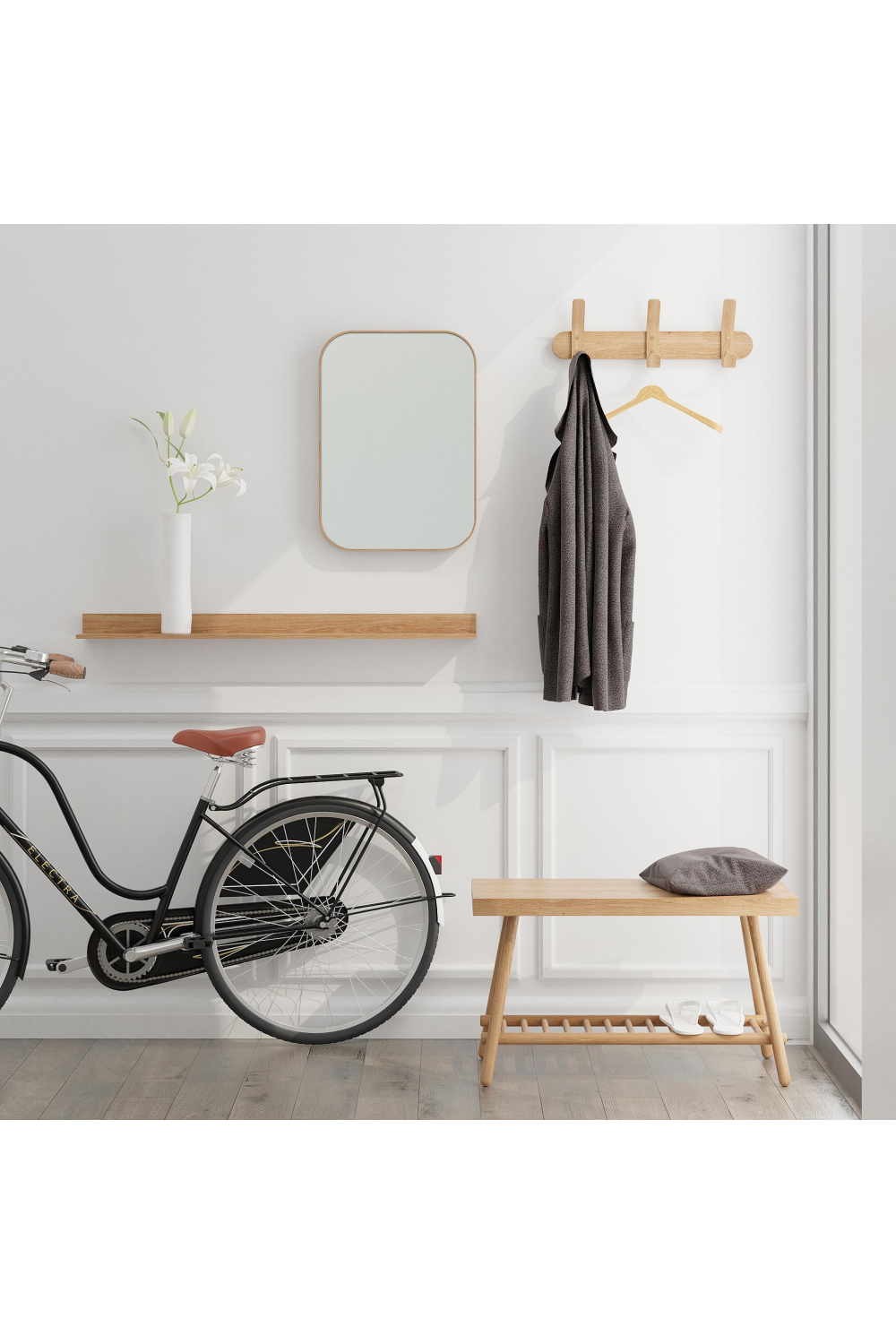 Left hook hanging rail features hooks, ideal for storing hats, coats and scarves. The wooden hook design is inspired by the classic metal hooks found in locker rooms and cloakroom areas. The hooks rounded edges prevent tearing and snags. The hooks screws are bespoke brass and when fitting can be 'dressed' so they all align.